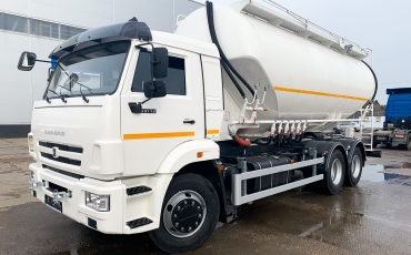 Автоцистерна АКВ-24-65117 предназначена для транспортировки, временного хранения и загрузки сухих сыпучих продуктов (мука, зерно, комбикорм, гранулы, пеллеты, сода и прочее).